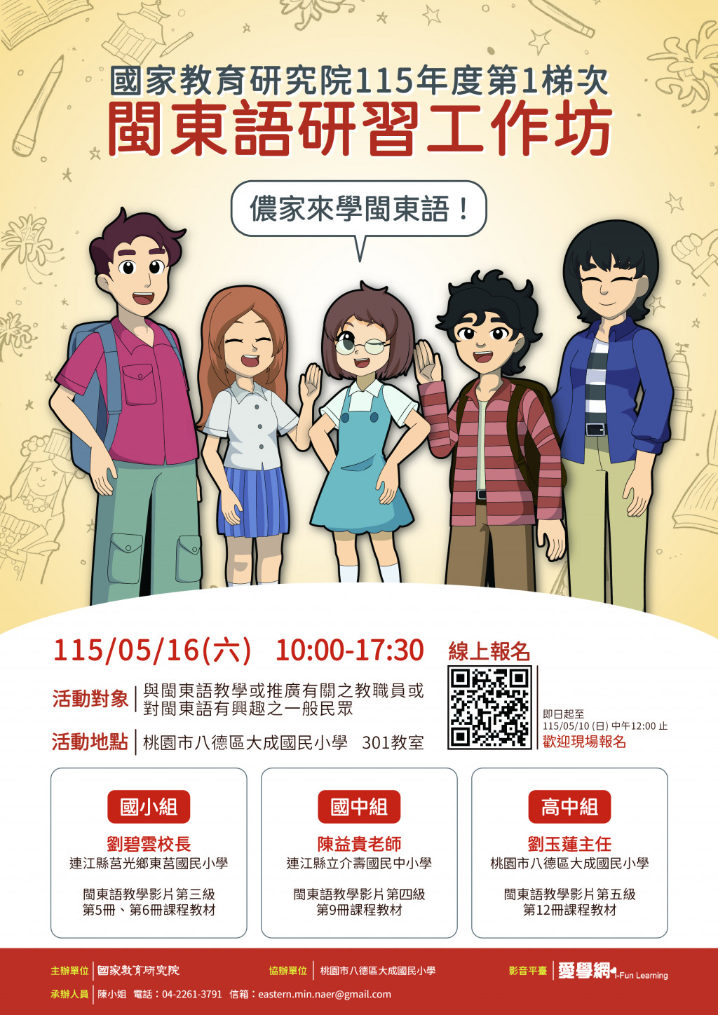 1、全國與閩東語教學或推廣業務相關之教育專業人士: